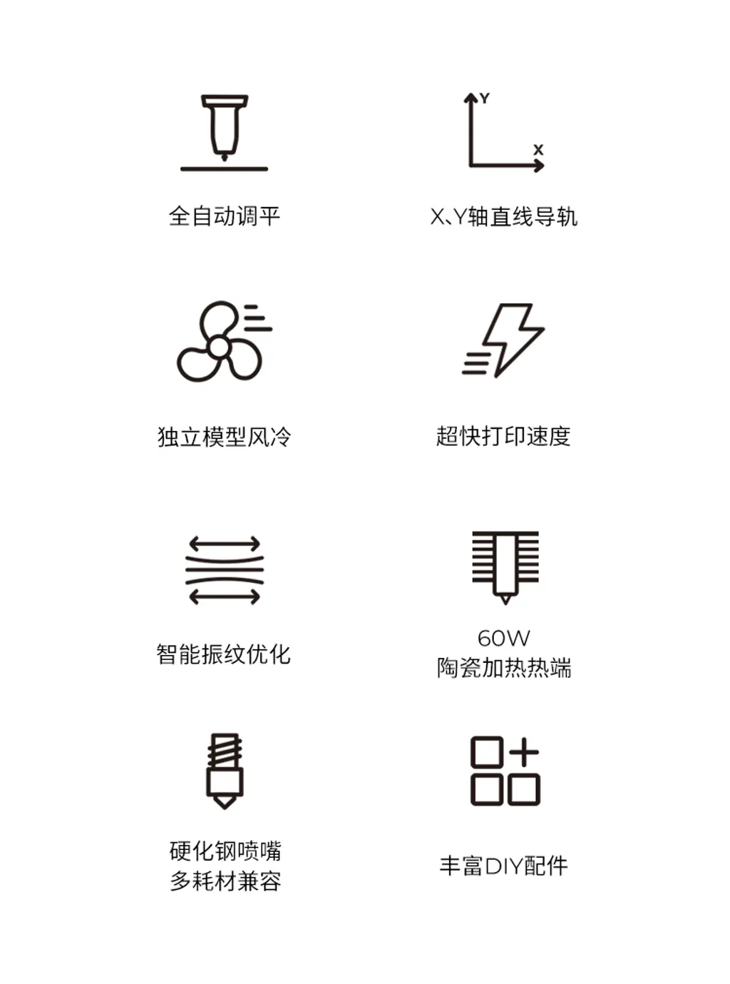 XY採用線性滑軌、高速列印、全自動調平、近端送料、Klipper韌體